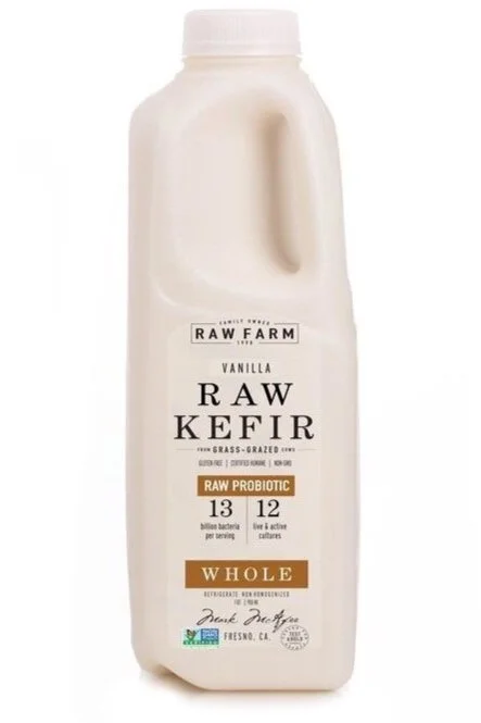 We are a little bit shy to reveal the bacteria strains we use to make our raw kefir because we do not want any other companies to copy our recipe. Our raw kefir is unlike any other product on the market, and our customers can vouch for that. What I can say is that we use 13 special cultures, such as: Streptococcus thermophilus, Lactobacillus delbrueckii subsp. Bulgaricus, Lactobacillus casei, Lactobacillus acidophilus, Bifidobacterium lactis, leuconostoc mesepteroides ssp, Cremoris and other specialized cultures that are in the Lactobacillus culture family. The most important thing to remember is all of these amazing specialized bacteria work symbiotically to grow and support a healthy functioning gut microbiome. Once cultures are added to the milk, it is then cultured for 36-48 hours to achieve a pH of approximately 3.8. RAW FARM Whole Raw Kefir is deliciously smooth, easy to digest, and very drinkable! Raw Kefir also contains special pre-biotics, which feed and protect gut bacteria. Our raw kefir is alive, with fully active enzymes, containing a biodiversity of probiotic bacteria, a broad spectrum of naturally occurring beneficial bacteria, protein, essential amino acids, OMEGA-3 fatty acids, metabolically available vitamins, immunoglobulins, minerals, and antioxidants. Absolutely NO antibiotics, synthetic hormones, or GMO anything. Raw kefir is truly a super-food!