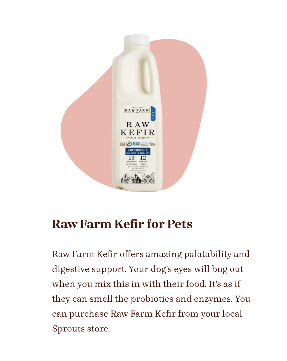 FIND RAW FARM’S RAW KEFIR PET FOOD MEAL TOPPER AT SPROUTS FARMERS MARKET, NATIONALLY