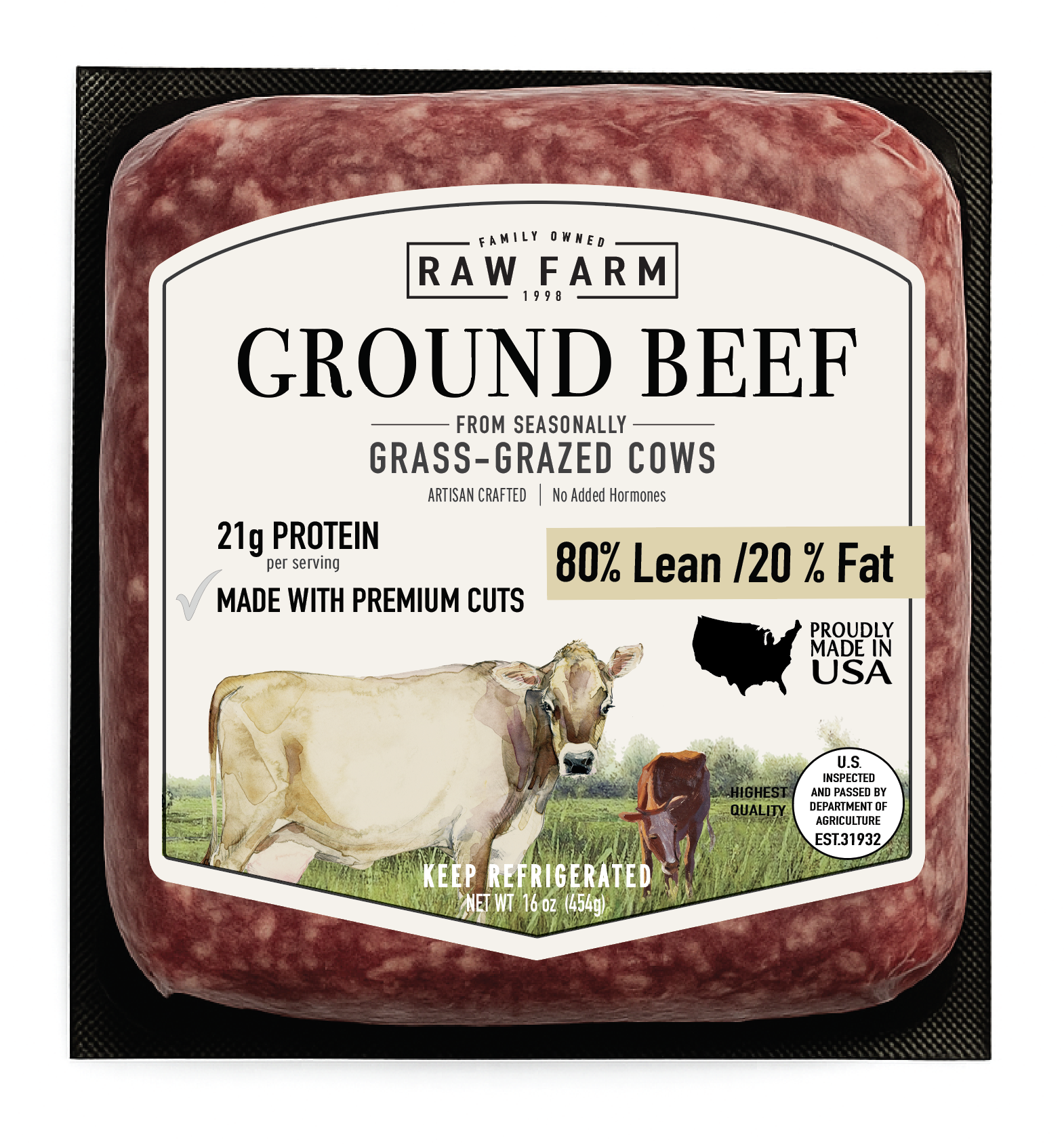 RAW FARM Beef is more than just incredibly delicious—it’s a true expression of our commitment to regenerative agriculture and whole-animal respect, made possible through our herd sustainability program. As part of our milking cows’ natural life cycle, this beef comes from milking cows that seasonally grass-graze and enjoy a well-balanced, nutrient-dense diet. The result? Meat naturally rich in CLA and Omega-3 fatty acids. What truly sets RAW FARM Beef apart is that it’s made from the whole cow—including premium cuts like filet, roasts, loins, Ribeye, Tri-Tip, and more—not just leftover trimmings. We like to say it’s the “filet mignon of ground beef.” This approach delivers meat that’s not only more nutritious, but also exceptionally flavorful. Always free from fillers, coloring, additives, antibiotics, and added hormones, each serving offers 21g–22g of clean, high-quality protein. Choose from our Classic 80/20 Ground Beef or our Primal, Ancestral Blend (which includes beef liver and beef heart) for next-level nourishment. Proudly sourced from the same cows that make our raw dairy products, RAW FARM Beef is sourced right here in the Central Valley of California, USA.