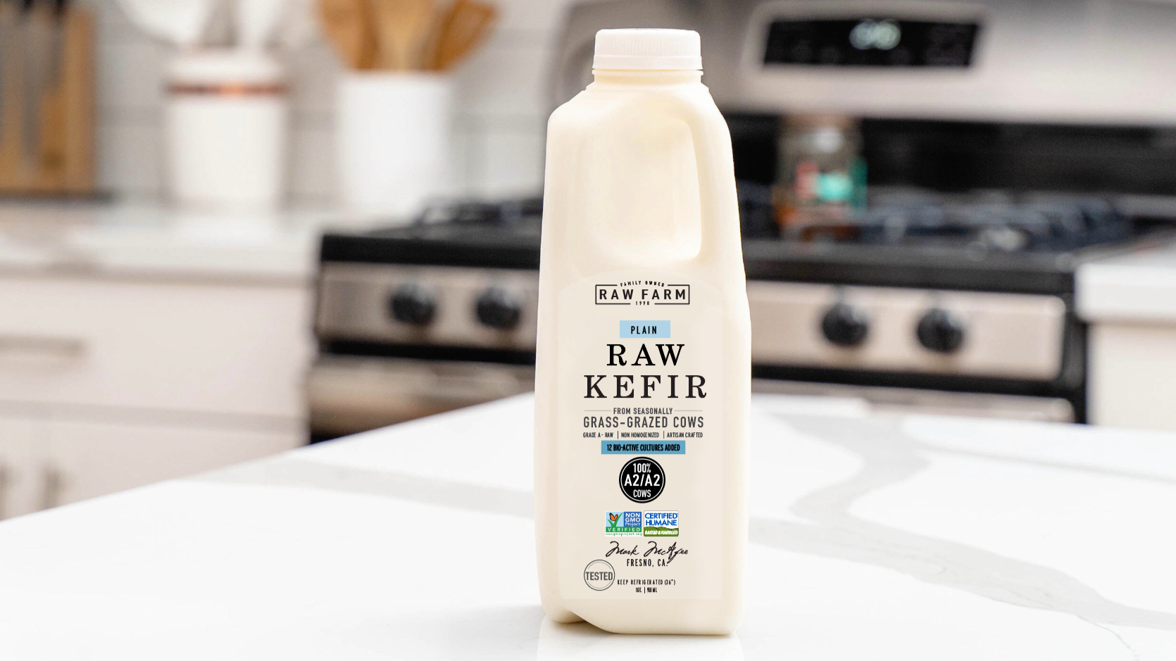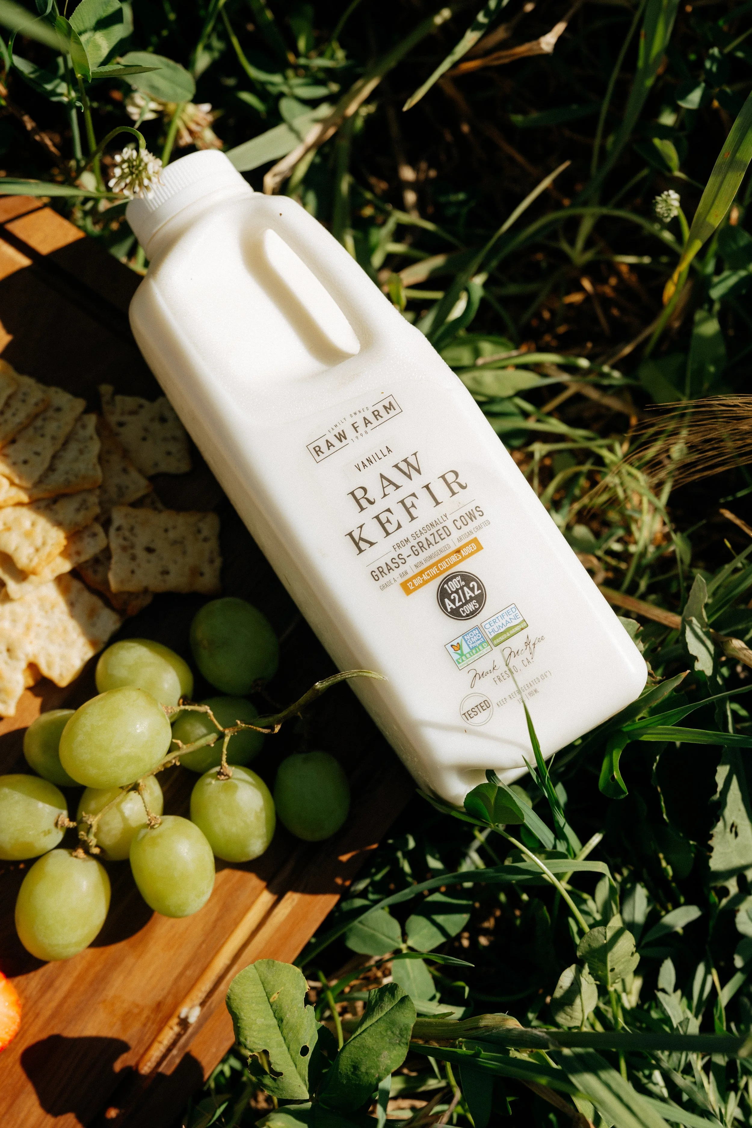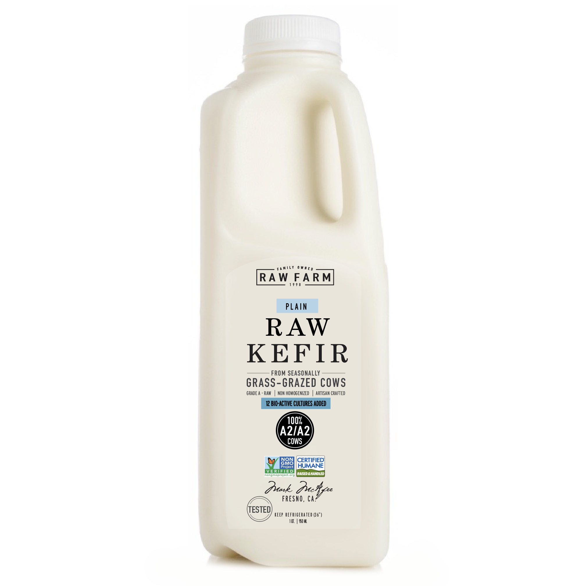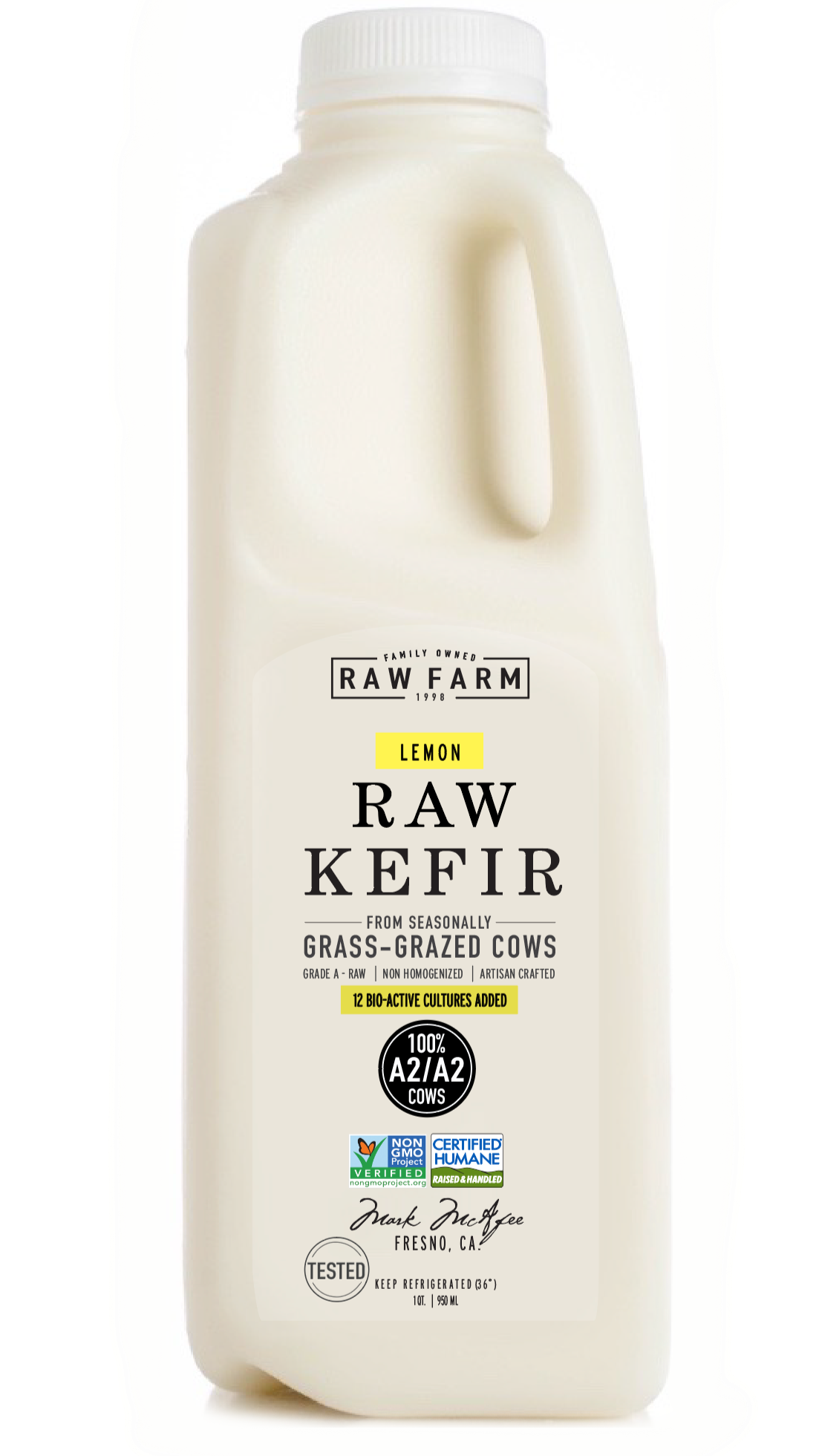 RAW FARM Whole Raw Kefir is made by culturing our whole raw milk with 12 specialized bacteria colonies (in addition to the bio-diverse colonies of beneficial bacteria naturally found in our raw milk). It is cultured for 36-48 hours to achieve a pH of approximately 3.8. RAW FARM Whole Raw Kefir is deliciously smooth and very drinkable! Raw Kefir contains special prebiotics, which feed and protects gut bacteria. In addition, our raw kefir is alive with fully active enzymes containing a biodiversity of probiotic bacteria a broad spectrum of naturally occurring beneficial bacteria, essential amino acids, OMEGA-3 fatty acids, metabolically available vitamins, immunoglobulins, minerals, and antioxidants.